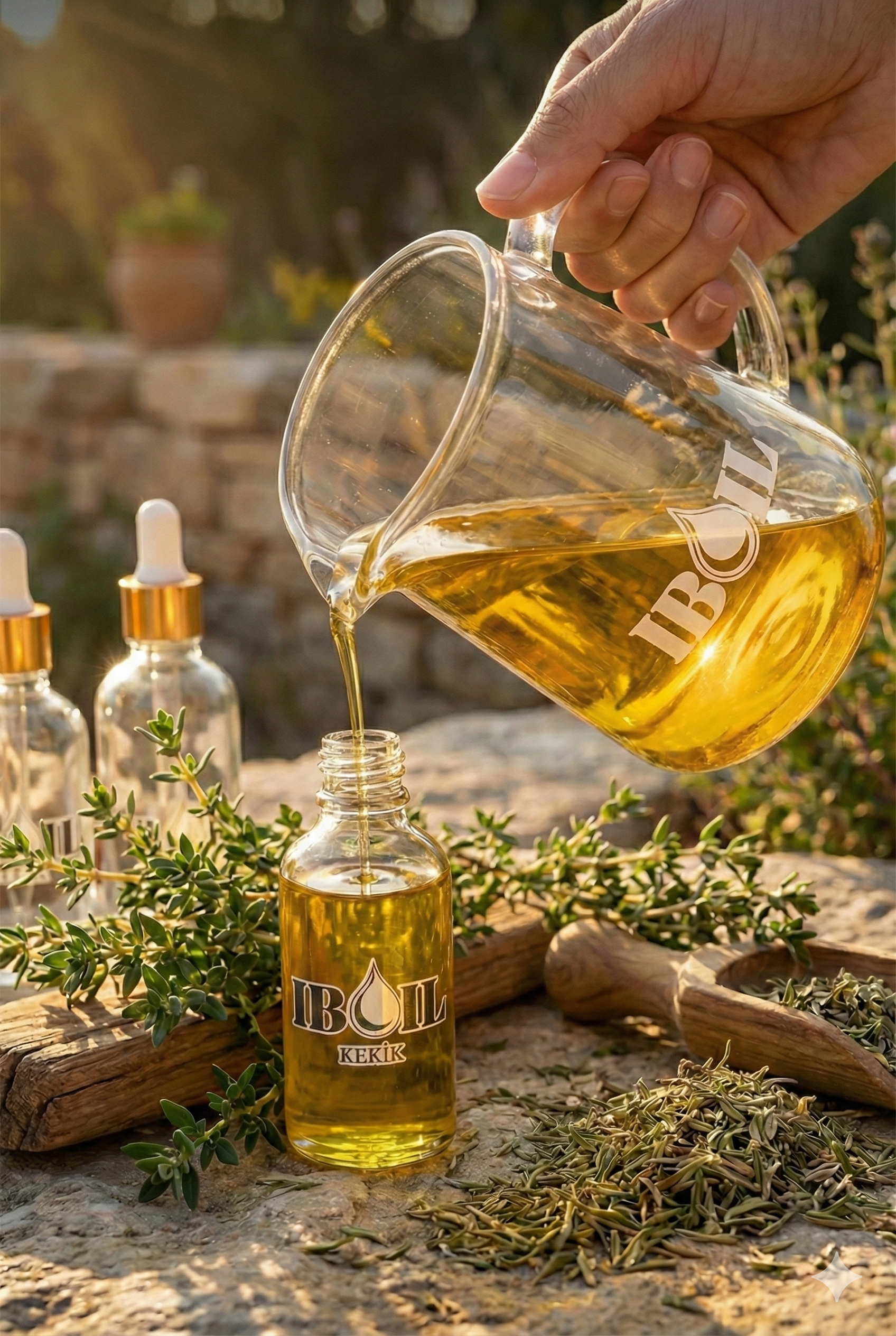 Kekik yağı; Güney Avrupa ve Akdeniz ikliminde yetişen ve keskin kokulu bir bitki türü olan kekiğin, buhar distilasyonu yöntemiyle damıtılmasından elde edilen aromatik bir yağ çeşidini oluşturuyor. Bu yağın üretilmesi için bitkinin yaprak ve dallarından faydalanılıyor. Gerçek kekik aromalı ve açık yeşil renkte olur.